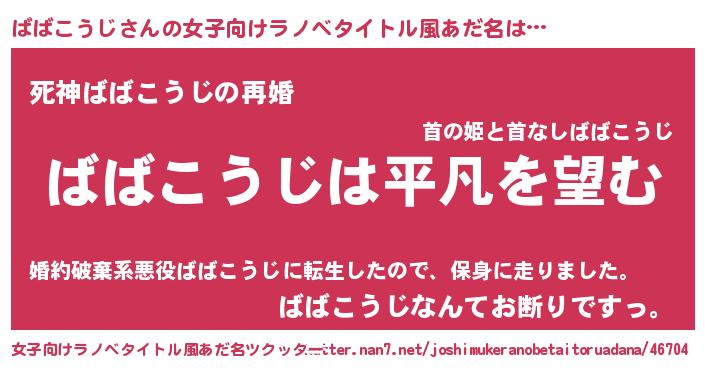 | 男性向けラノベタイトル風あだ名 | 『ダンジョンにばばこうじを求めるのは間違っているだろうか』 |