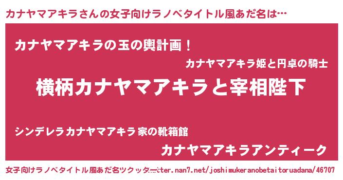 | 恥ずかしいあだ名 | 『カナヤマアキラデラックス』『カナちん』 |