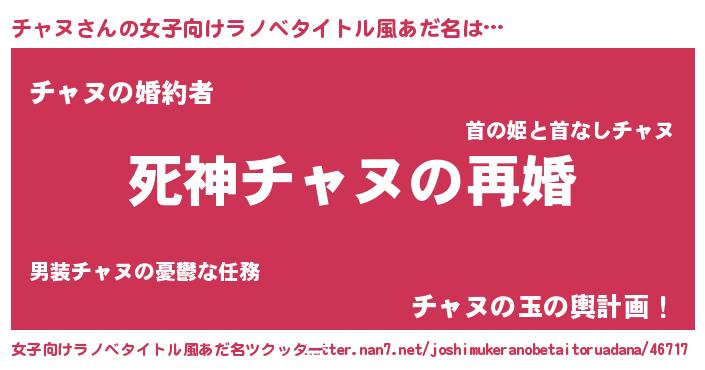| 男性向けラノベタイトル風あだ名 | 『ノーゲーム・ノーチャヌ』 |