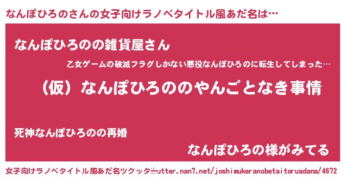 | ヒーロー風カッコイイあだ名 | 『スーパーナンポヒロノ』『炎刃騎士ナン』 |