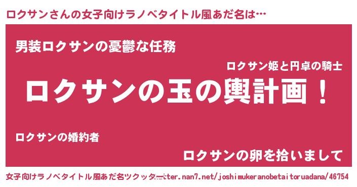 | 男性向けラノベタイトル風あだ名 | 『転生したらロクサンだった件』 |