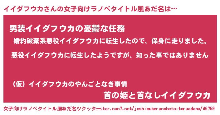 | 男性向けラノベタイトル風あだ名 | 『この素晴らしい世界にイイダフウカを!』 |