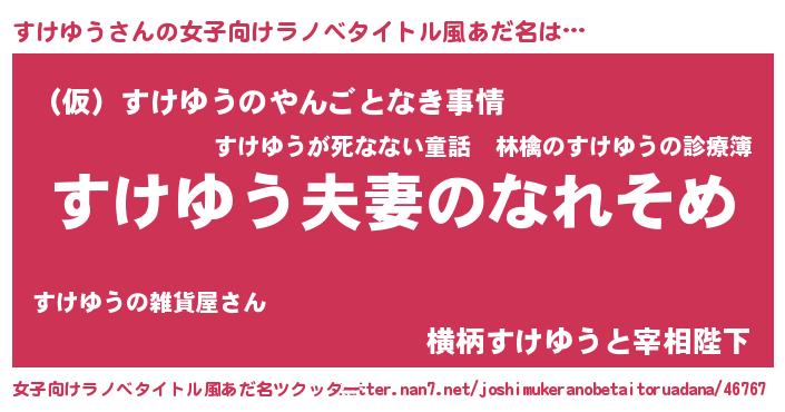 | 男性向けラノベタイトル風あだ名 | 『おまえをオタクにしてやるから、俺をすけゆうにしてくれ! 』 |
