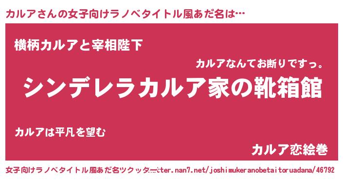 | 男性向けラノベタイトル風あだ名 | 『緋弾のカルア』『魔法科高校のカルア』 |