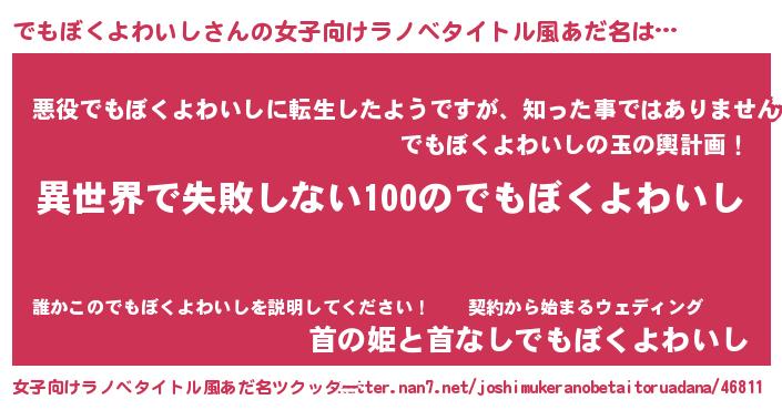 | 男性向けラノベタイトル風あだ名 | 『でもぼくよわいしという概念が存在しない退屈な世界 』 |