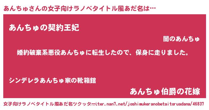 | ヘコむあだ名 | 『あんちゅ(笑)』『豆乳』『あんっ子』 |