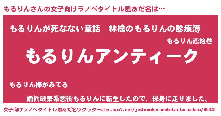 | 男性向けラノベタイトル風あだ名 | 『魔法科高校のもるりん』 |