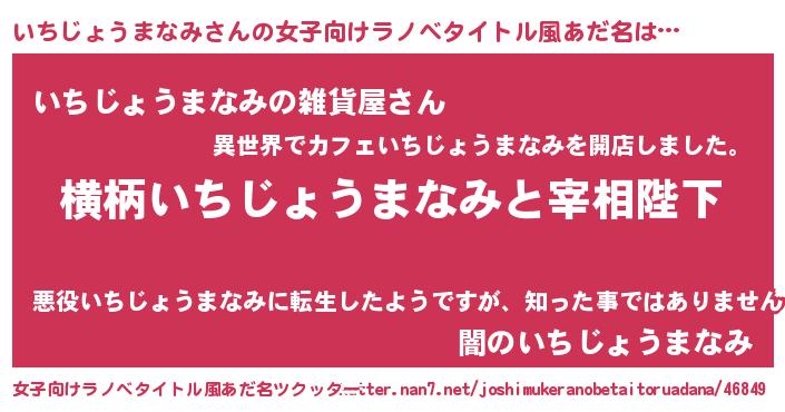 | 男性向けラノベタイトル風あだ名 | 『いちじょうまなみに滅ぼされるだけの簡単なお仕事です』 |