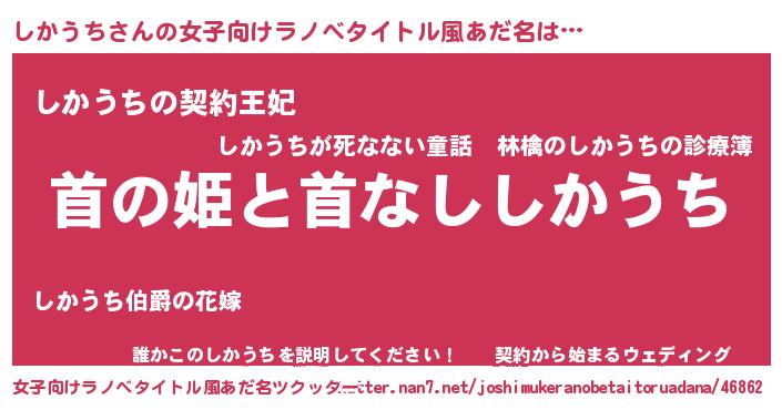 | 胡散臭い通販商品みたいなあだ名 | 『来世でも幸せになれる健康食品…その名も「しかうち」』 |