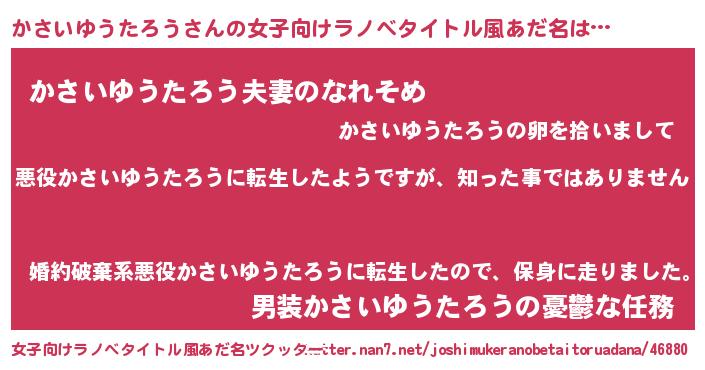 | 男性向けラノベタイトル風あだ名 | 『この素晴らしい世界にかさいゆうたろうを!』 |