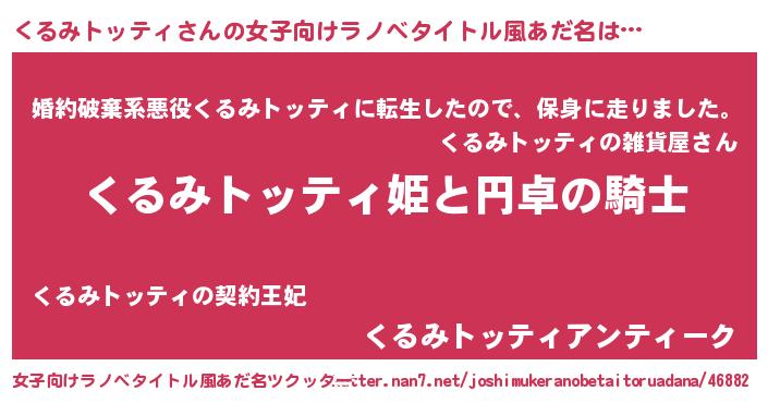 | 男性向けラノベタイトル風あだ名 | 『クルミトッティアートオンライン』 |