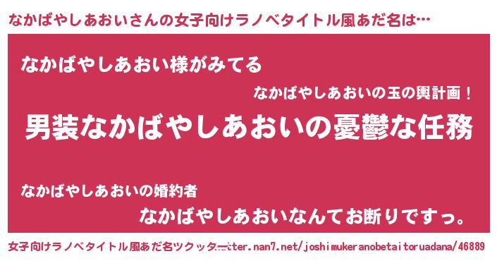 | 胡散臭い通販商品みたいなあだ名 | 『伝統あるサプリメント…その名も「なかばやしあおい」』 |