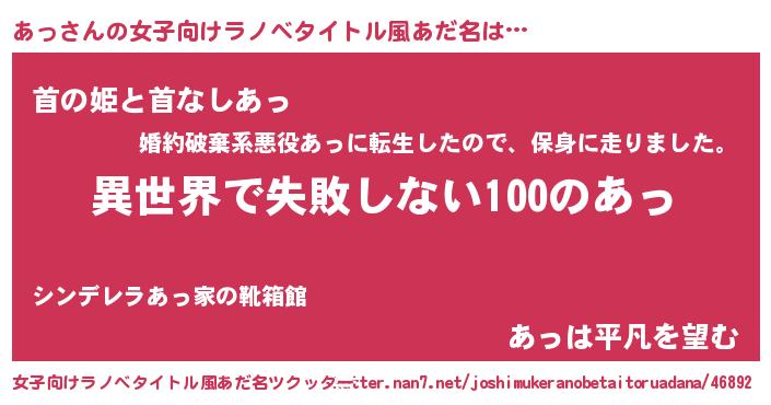 | 男性向けラノベタイトル風あだ名 | 『あっという概念が存在しない退屈な世界 』 |