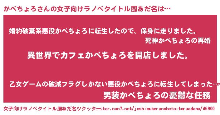 | 意味不明あだ名 | 『永久保存かべちょろ』 |
