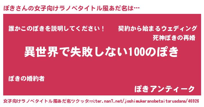 | ヘコむあだ名 | 『ぽき(笑)』『ぽきっふぃ~』 |