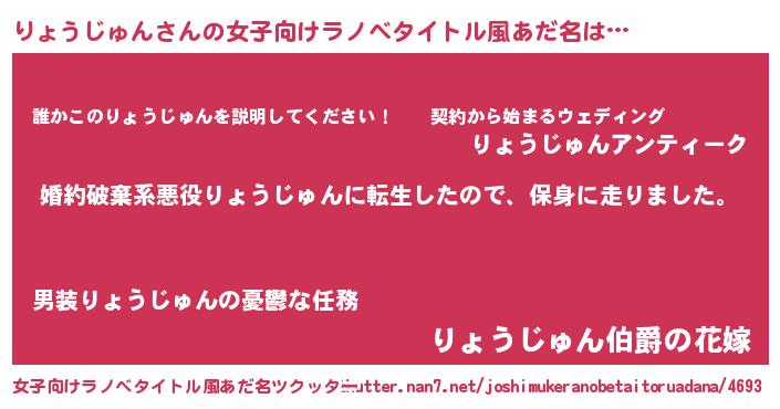 | 男性向けラノベタイトル風あだ名 | 『転生したらりょうじゅんだった件』 |