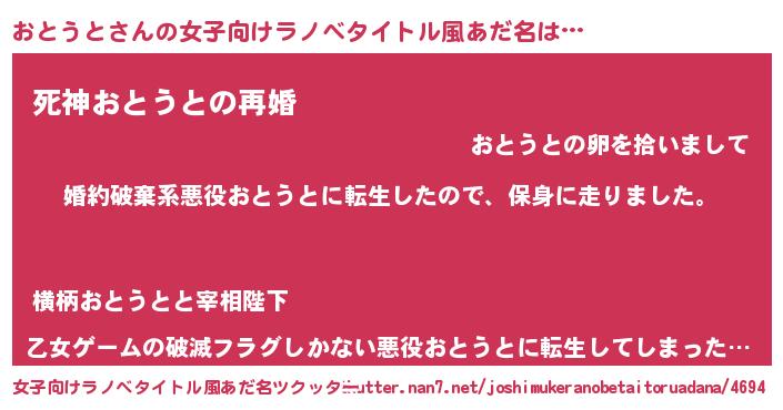 | 男性向けラノベタイトル風あだ名 | 『オトウトスレイヤー』 |