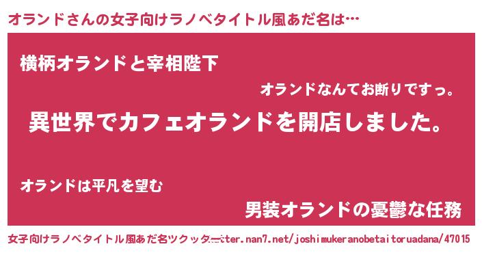 | 男性向けラノベタイトル風あだ名 | 『誰もが恐れるあのオランドが、ぼくの専属メイドになるようです。』 |