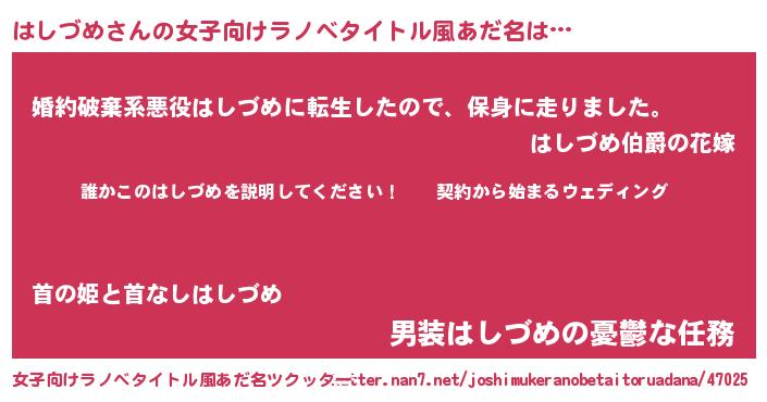 | 男性向けラノベタイトル風あだ名 | 『ハシヅメアートオンライン』 |