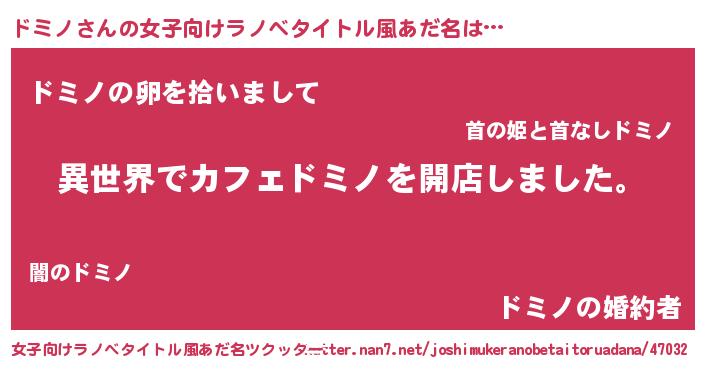 | 意味不明あだ名 | 『永久保存ドミノ』『ドミノフォーエバー』 |