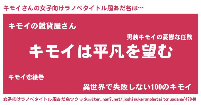 | 胡散臭い通販商品みたいなあだ名 | 『信頼と実績のサプリメント…その名も「キモイ」』 |