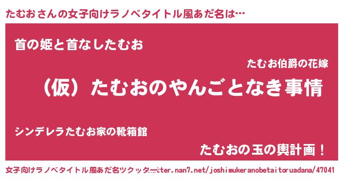 | ヒーロー風カッコイイあだ名 | 『スーパータムオ』『ウルトラたむおマン』 |