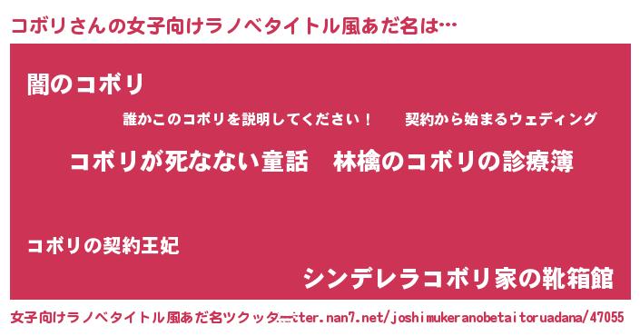 | ヒーロー風カッコイイあだ名 | 『仮面コボダー』『最強戦士コボリ』 |