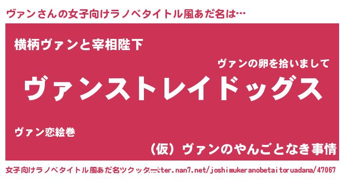 | 意味不明あだ名 | 『自称ヴァン』『ペロリンヴァン』 |
