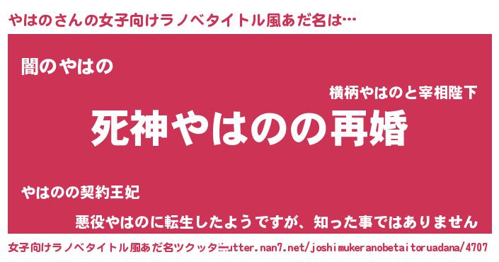 | 男性向けラノベタイトル風あだ名 | 『ノーゲーム・ノーヤハノ』 |