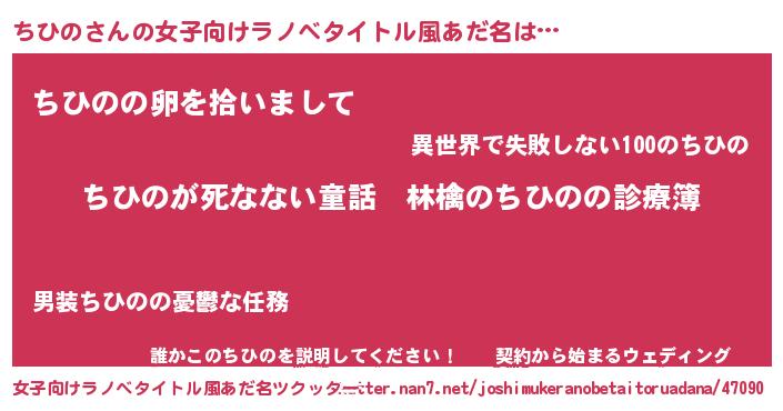 | 意味不明あだ名 | 『住所不定無職ちひの(77歳)』 |