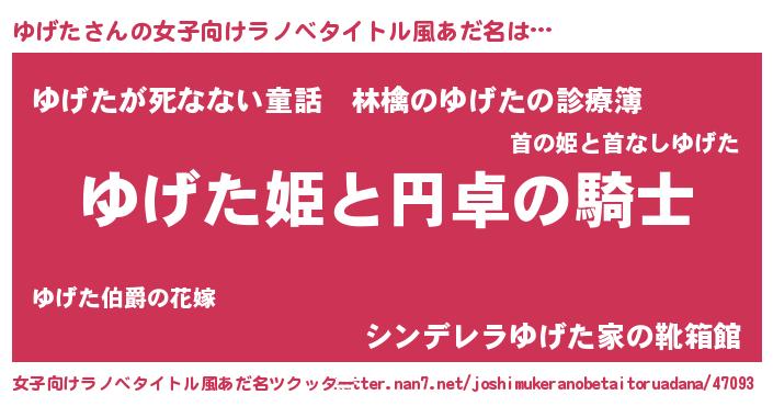| 男性向けラノベタイトル風あだ名 | 『ユゲタアートオンライン』 |
