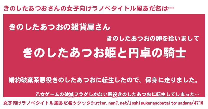 | 胡散臭い通販商品みたいなあだ名 | 『モテモテ間違いなし水晶球…その名も「きのしたあつお」』 |