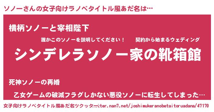 | 胡散臭い通販商品みたいなあだ名 | 『ハリウッド女優が絶賛した100年もののヴィンテージワイン…その名も「ソノー」』 |