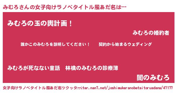 | 男性向けラノベタイトル風あだ名 | 『ミムロアートオンライン』 |
