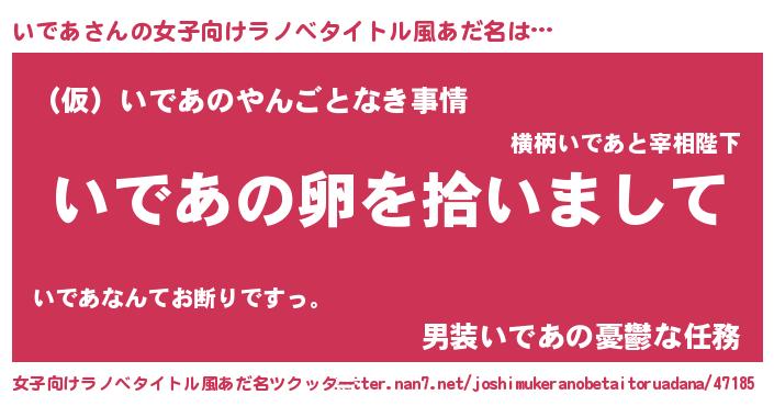 | 意味不明あだ名 | 『とにかく怪しいいであ』『自称いであ』 |