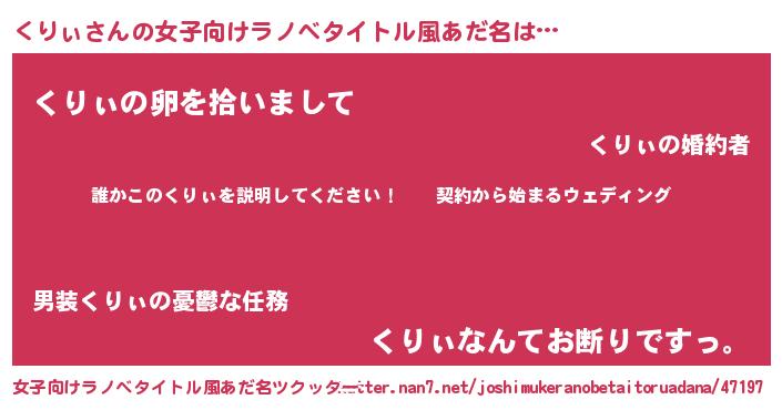 | ヘコむあだ名 | 『くりっふぃ~』『くりっちょ』 |
