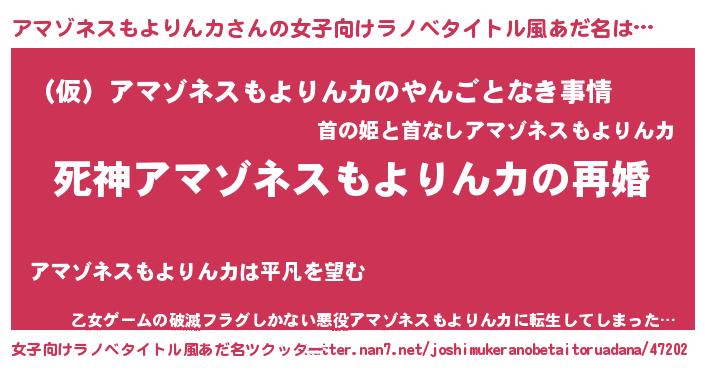 | ヒーロー風カッコイイあだ名 | 『慈愛の使者アマゾネスもよりんカ』 |