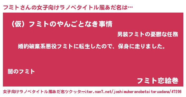 | 男性向けラノベタイトル風あだ名 | 『フミトスレイヤー』『フミトの憂鬱』 |