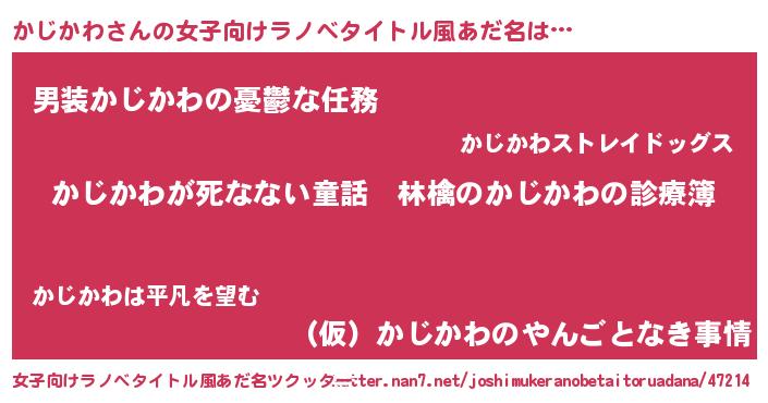 | 意味不明あだ名 | 『住所不定無職かじかわ(93歳)』 |