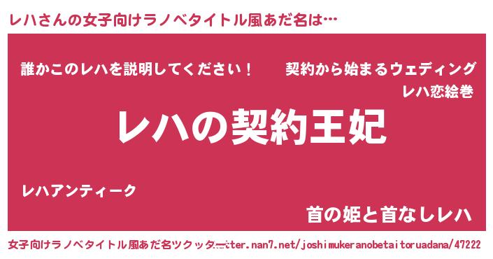 | 男性向けラノベタイトル風あだ名 | 『レハという概念が存在しない退屈な世界 』 |