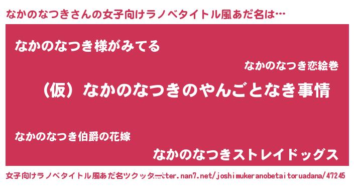 | 胡散臭い通販商品みたいなあだ名 | 『必ず成功するブレスレット…その名も「なかのなつき」』 |