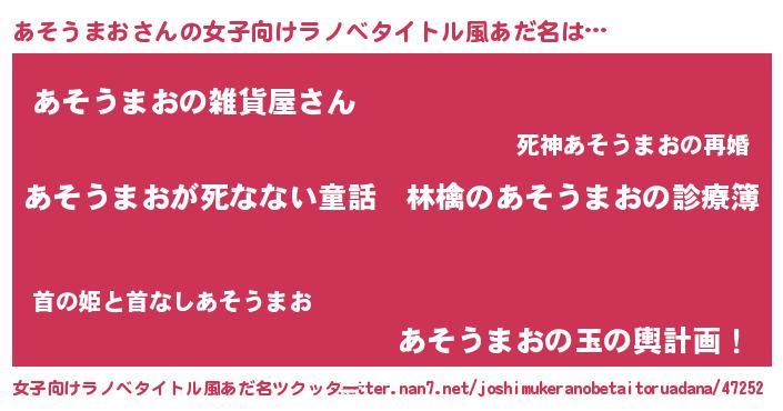 | 男性向けラノベタイトル風あだ名 | 『魔弾の王とあそうまお』 |