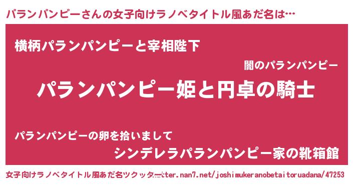 | 男性向けラノベタイトル風あだ名 | 『パランパンピーの憂鬱』 |