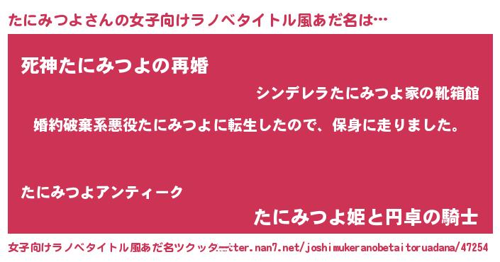 | 肩書あだ名 | 『たにみつよ中尉』『たにみつよ教授』 |