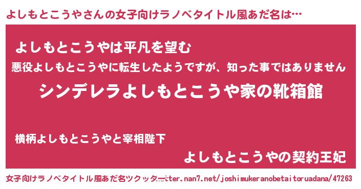 | ヘコむあだ名 | 『よしを』『よしもとこうや(笑)』 |