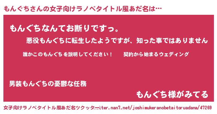 | 胡散臭い通販商品みたいなあだ名 | 『億万長者になれるブレスレット…その名も「もんぐち」』 |