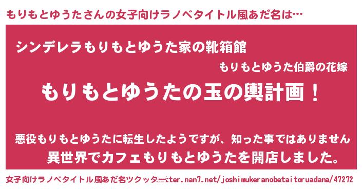 | 胡散臭い通販商品みたいなあだ名 | 『前代未聞の健康食品…その名も「もりもとゆうた」』 |