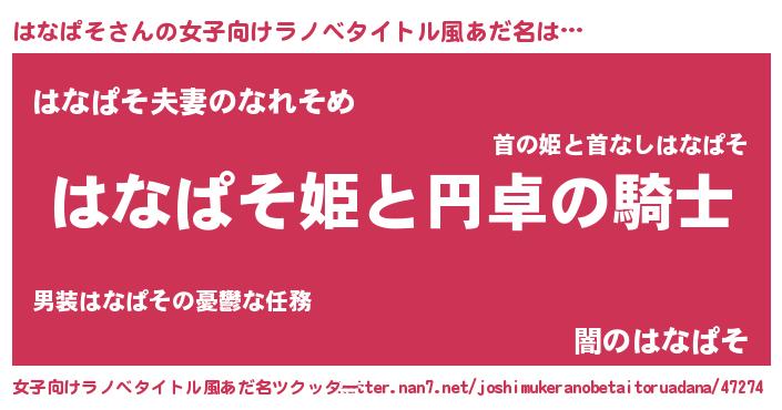 | 男性向けラノベタイトル風あだ名 | 『ハナパソアートオンライン』 |