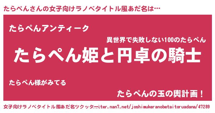 | 意味不明あだ名 | 『ペロリンたらぺん』『自称たらぺん』 |