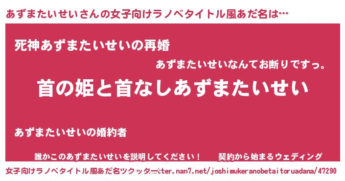 | 男性向けラノベタイトル風あだ名 | 『はたらくあずまたいせいさま!』 |